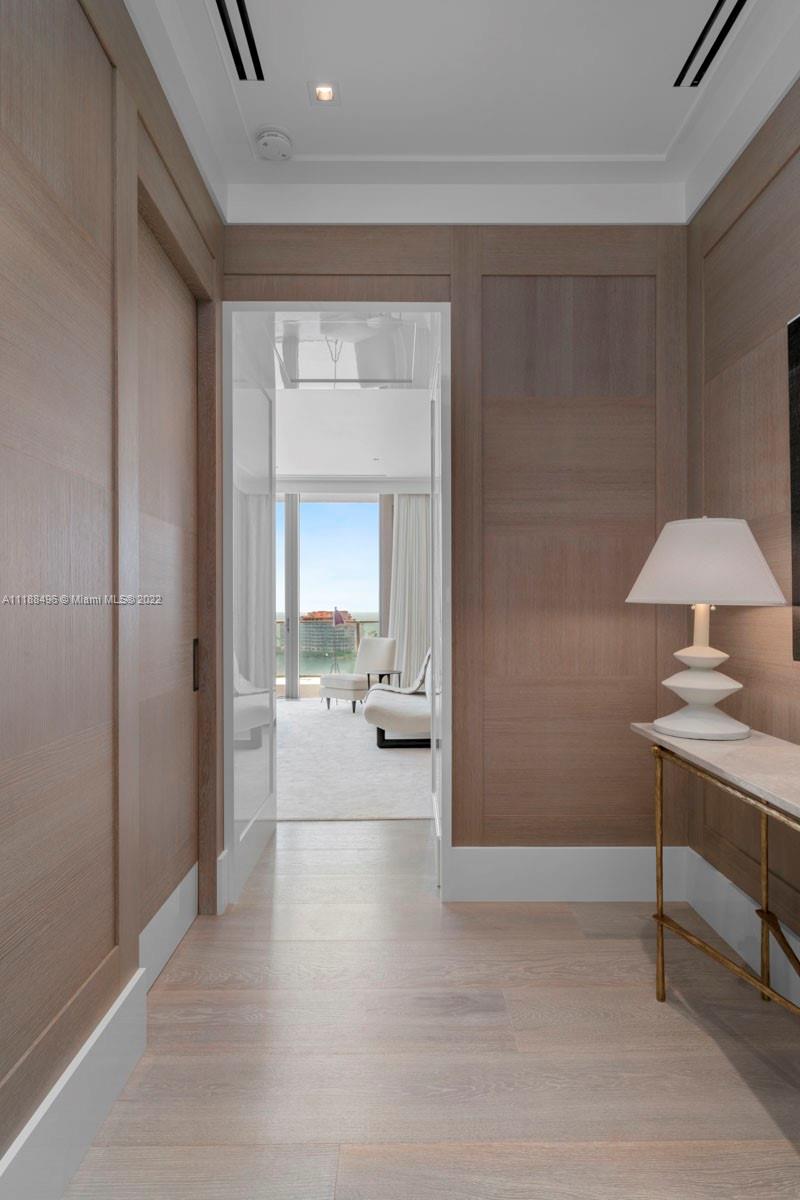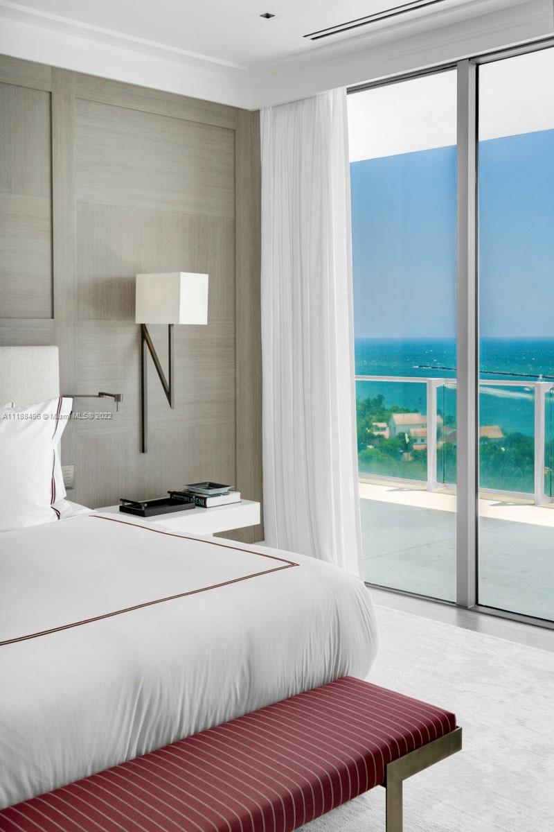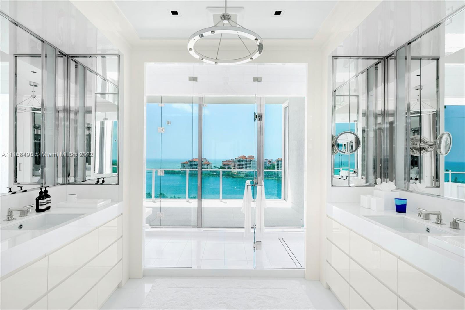 Designed by renowned Luis Bustamante, this renovated residence at the coveted Apogee merges impeccably curated finishes, & a perfectly distributed open floor plan maximizing living areas, space & views through floor-to-ceiling windows & expansive balconies overlooking Biscayne Bay, Fisher Island & the ocean. Indoor/outdoor living collides gracefully w/ walls of glass & an expansive 11’ deep wraparound balcony. Luxurious features include wide plank, stained natural oak wood on floors & wall details throughout, white high gloss lacquered walls throughout the living room, Thasos Marble in all bathroom floors, shower walls & countertops, fully automated smart home w/ surround sound, electric shades & Lutron lighting. Gourmet kitchen w/Calacatta Gold marble & SubZero, Wolf & Miele appliances.