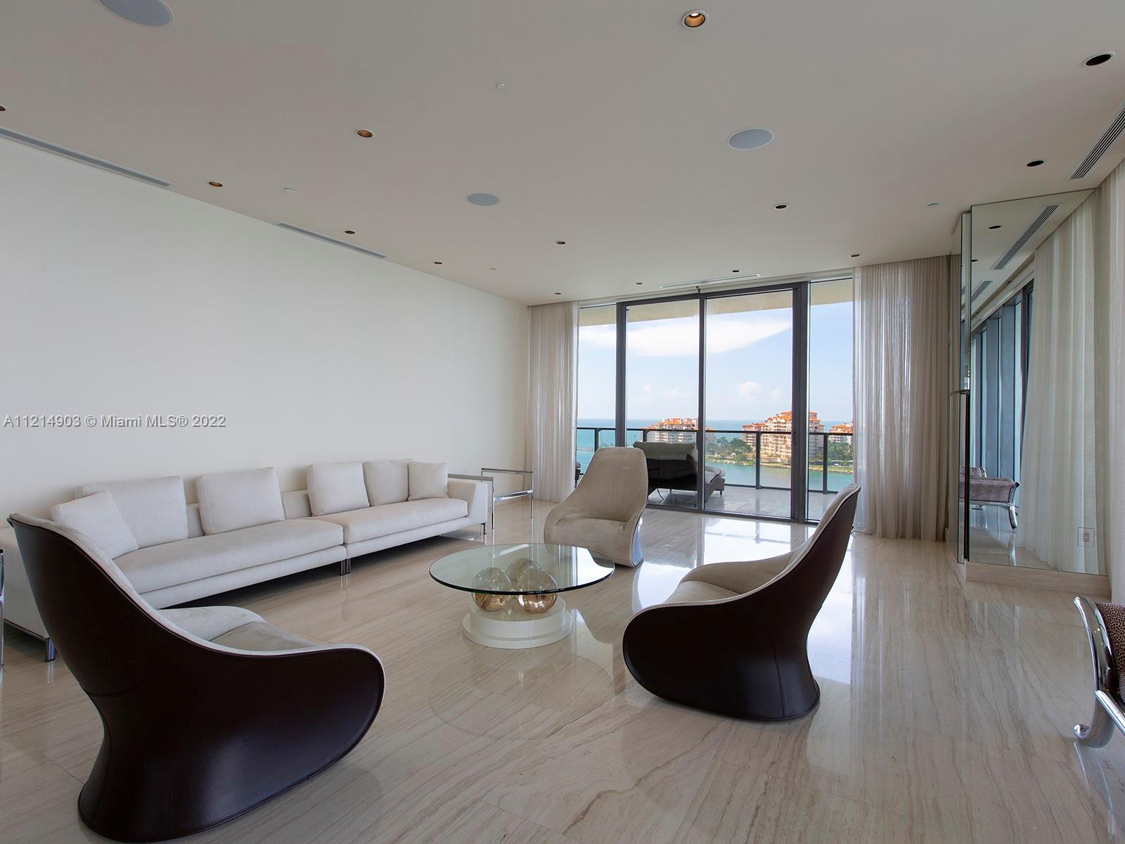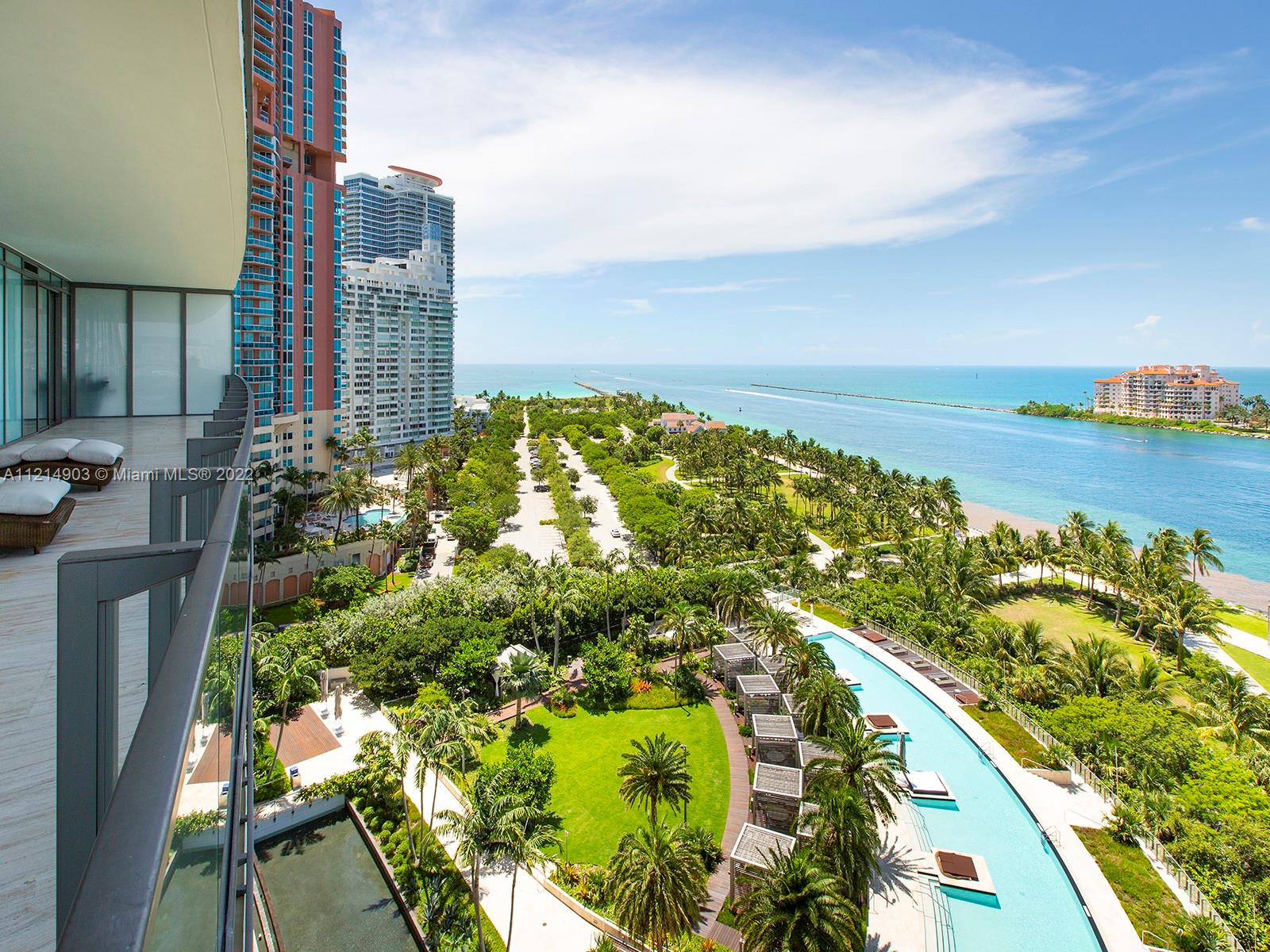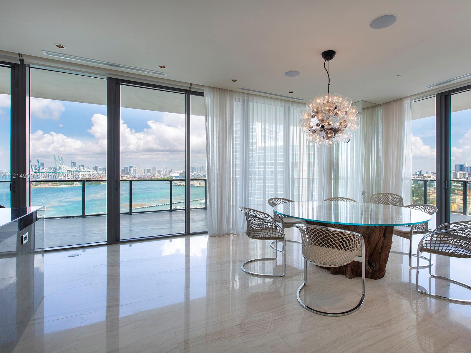 Located at the very southern tip of South Beach, this stunning residence offers exclusivity and privacy. With 4,200 SF of luxurious open plan living space, this 4 BD/3.5 BA comes with the finest of finishes. The kitchen highlights superb craftsmanship to include multiple ovens, gas appliances, sub-zero refrigerator, spacious island. With only 4-units per floor, take in the iconic Miami skyline and flow-through simultaneous views of the ocean and the city from your own 11-feet deep wrap-around balcony. Enjoy other state-of-the-art amenities like floor-to-ceiling impact and sound resistant windows crafted from a special "pure and clear" glass, beautiful marble flooring, and more! Infinity pool area and private 2-car air-conditioned garage included.