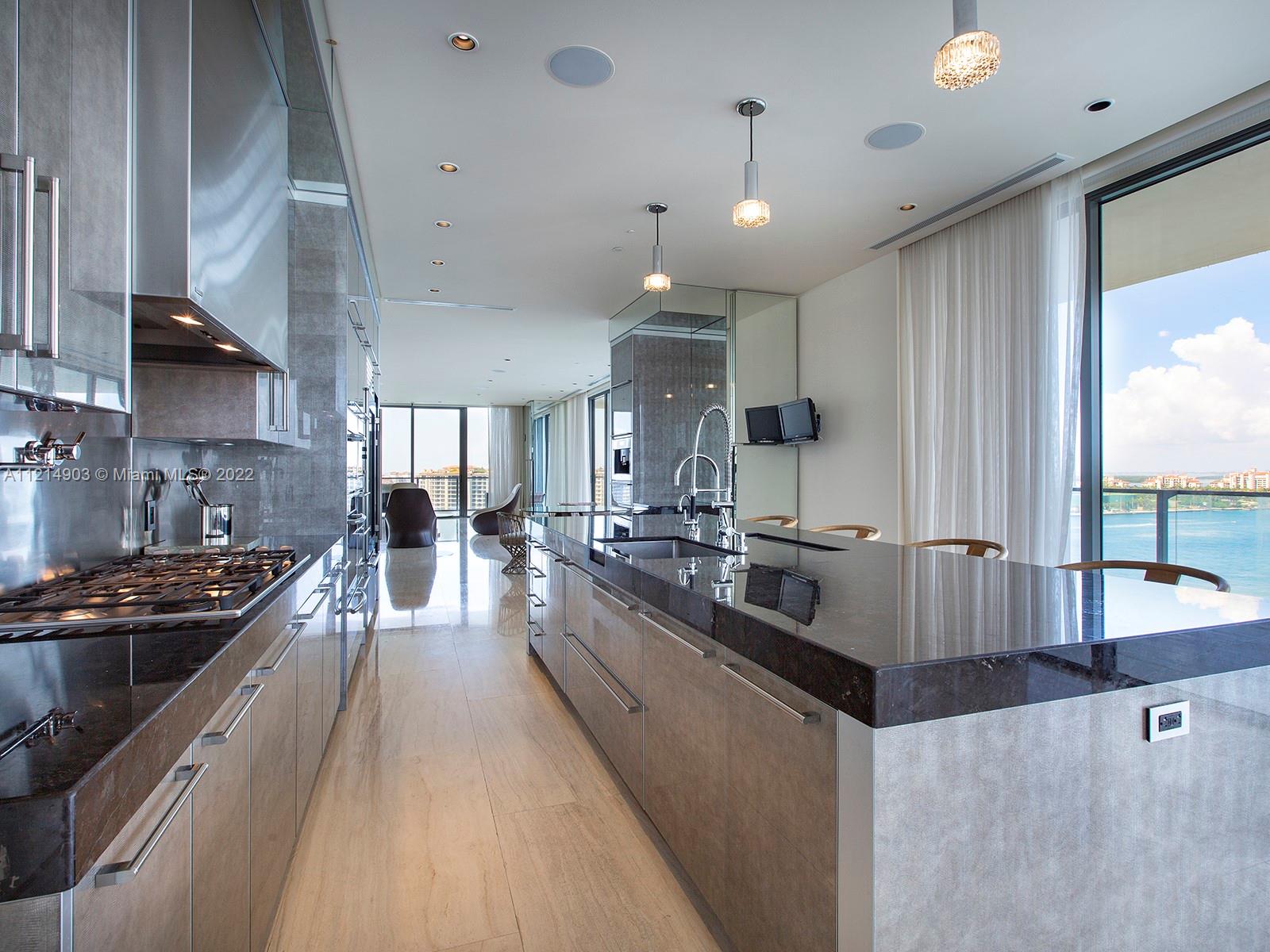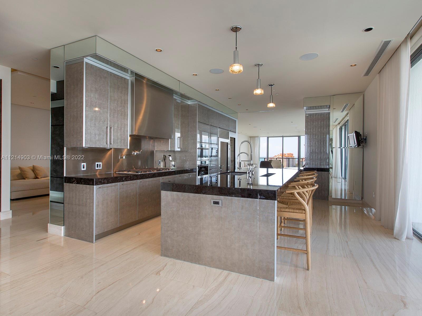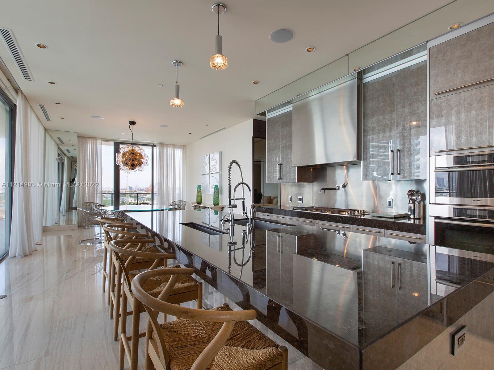 Located at the very southern tip of South Beach, this stunning residence offers exclusivity and privacy. With 4,200 SF of luxurious open plan living space, this 4 BD/3.5 BA comes with the finest of finishes. The kitchen highlights superb craftsmanship to include multiple ovens, gas appliances, sub-zero refrigerator, spacious island. With only 4-units per floor, take in the iconic Miami skyline and flow-through simultaneous views of the ocean and the city from your own 11-feet deep wrap-around balcony. Enjoy other state-of-the-art amenities like floor-to-ceiling impact and sound resistant windows crafted from a special "pure and clear" glass, beautiful marble flooring, and more! Infinity pool area and private 2-car air-conditioned garage included.