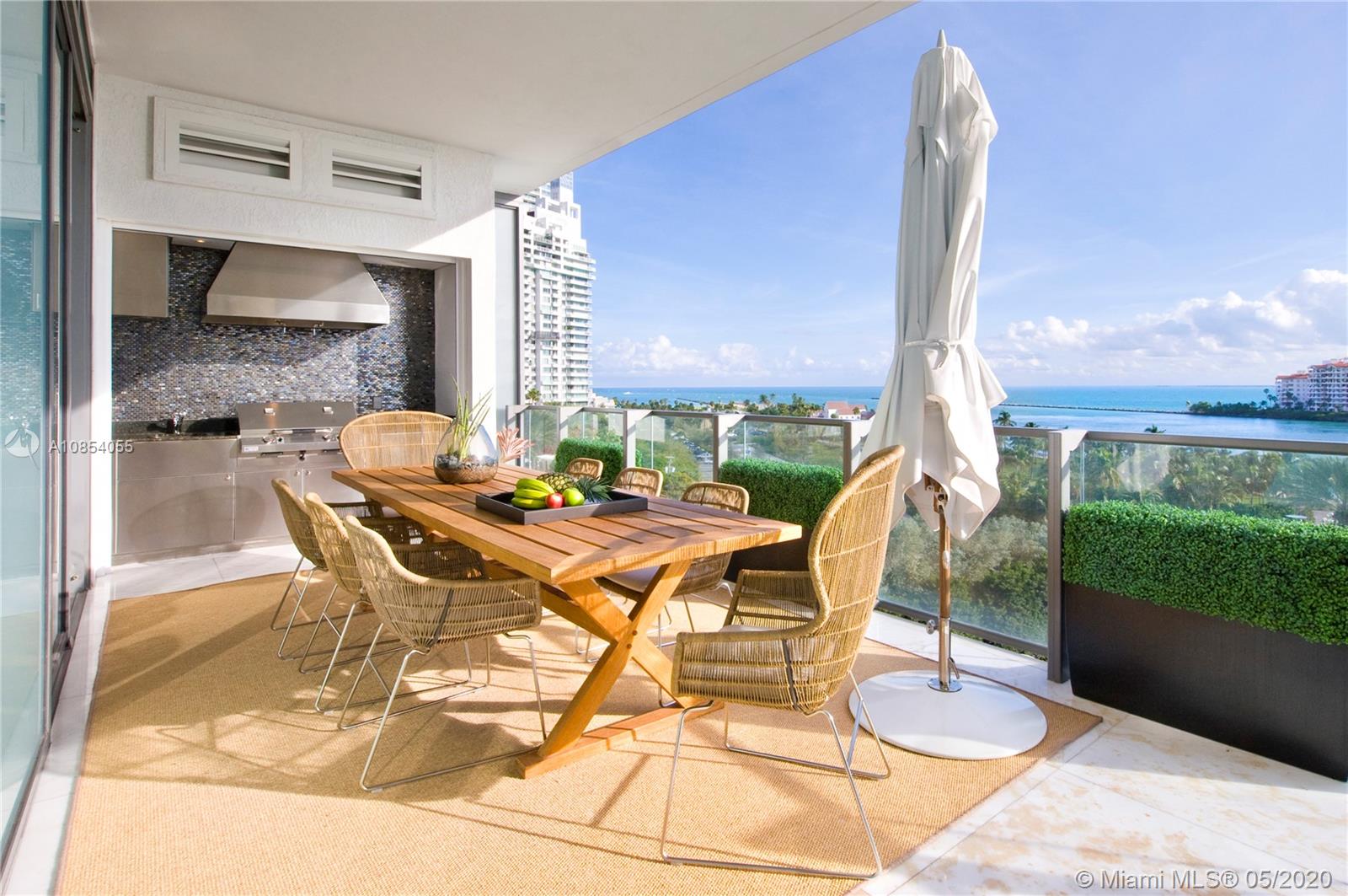 Warm & inviting, this custom designed beautiful 3 bedroom 3 1/2 bath residence is located at the prestigious Apogee on South Beach. This impeccable flow through unit features exceptional sunrise vistas of Fisher Island, and the Atlantic Ocean. Refined elegance includes designer finishes, chefs kitchen, top of the line appliances, fire place, custom millwork, mahogany doors, electric shades and Savant AV system /Lutron lighting. 11 foot wide balconies allow for an indoor/outdoor dining and entertaining experience, featuring an outdoor summer kitchen and gas BBQ. The residence includes a private Air conditioned 2 car garage with storage. Amenities include spa, gym, Bay Front Infinity Pool and concierge.